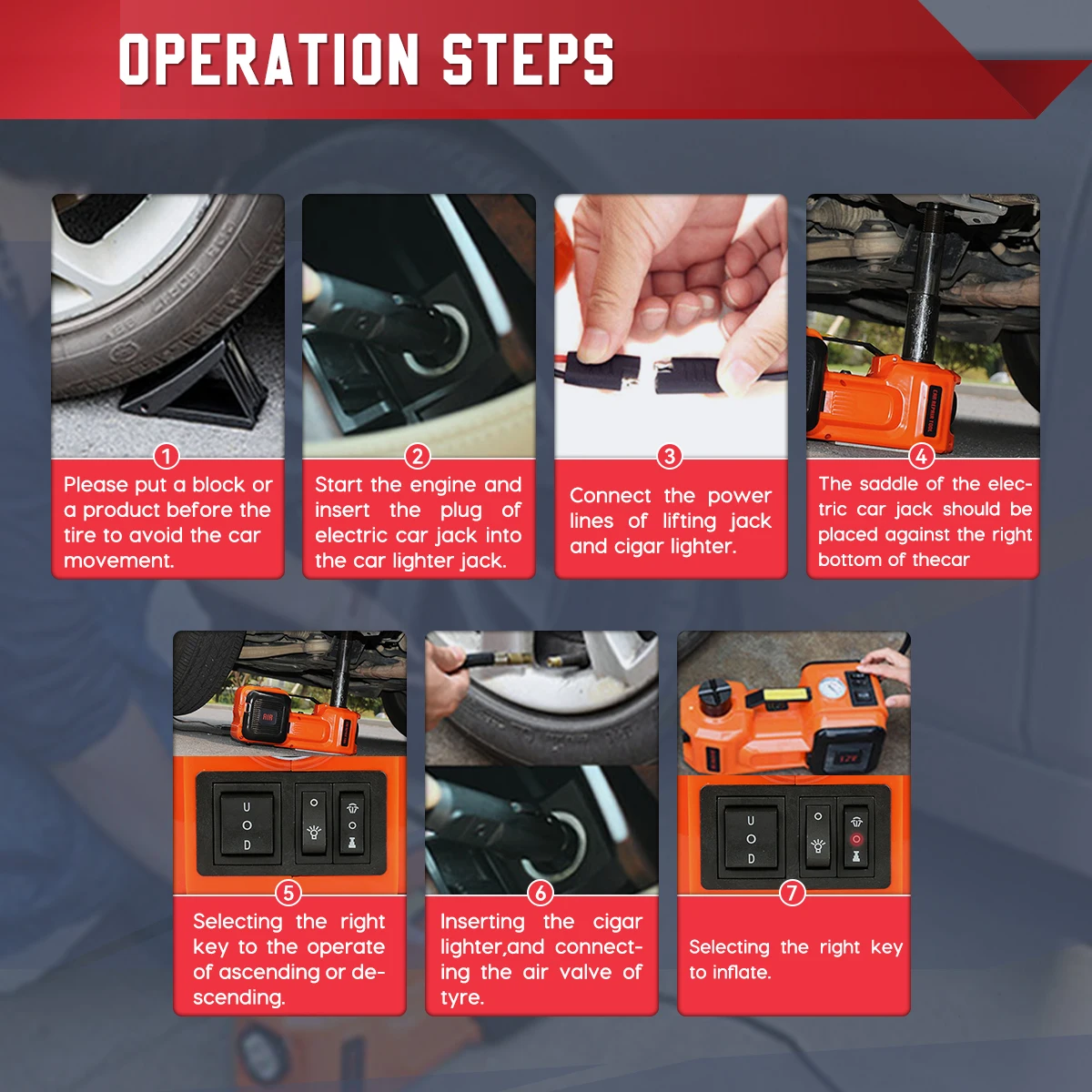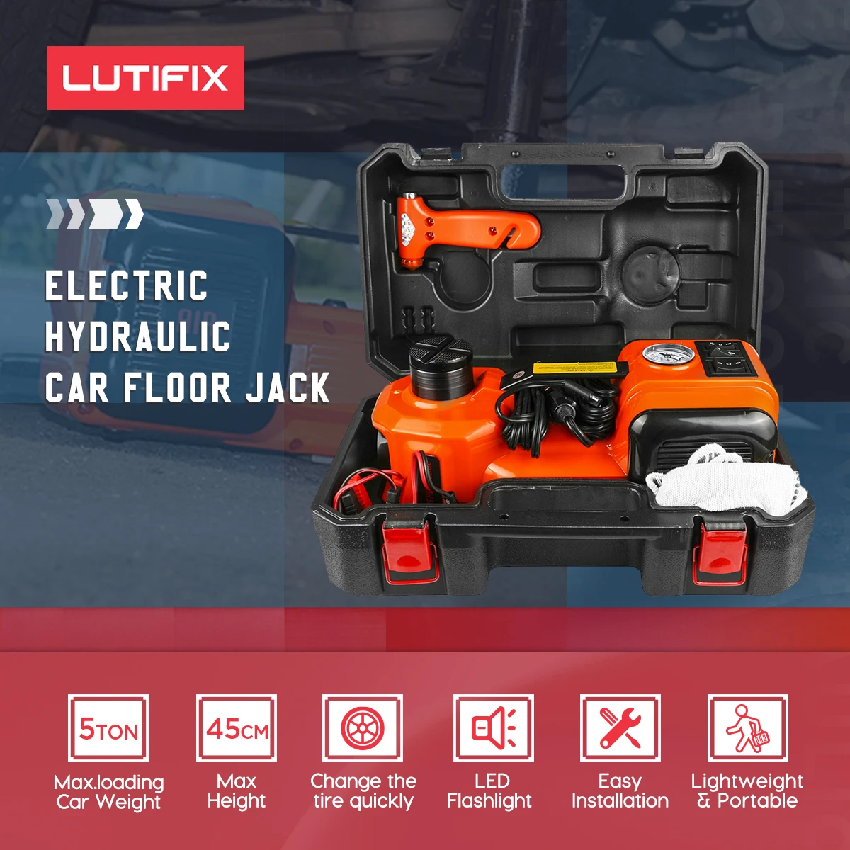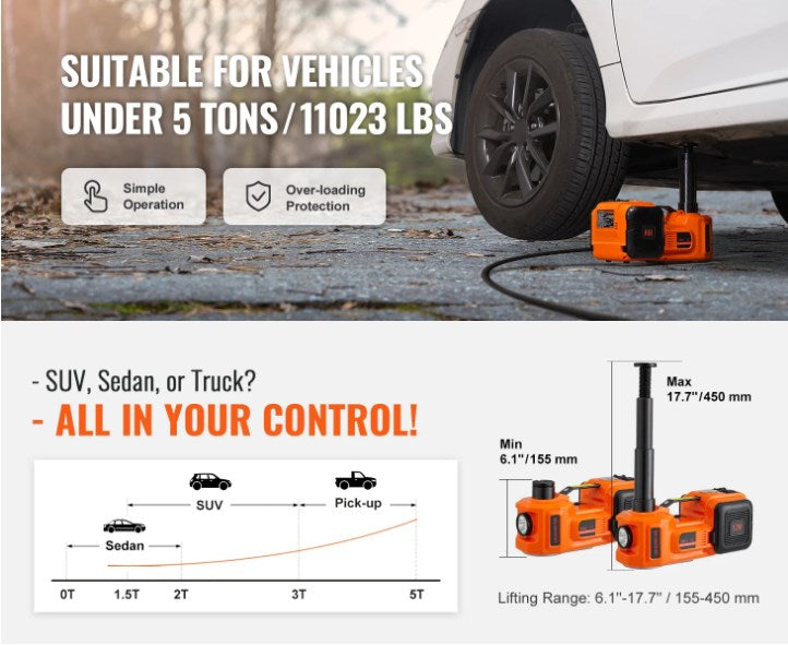 STRONG VERSATILITY - Designed for versatility, this electric hydraulic jack is suitable for a wide range of vehicles, including small bridge vehicles, off-road vehicles and commercial vehicles. Whether on the road or in the garage, this jack is your reliable companion for effortless lifting.