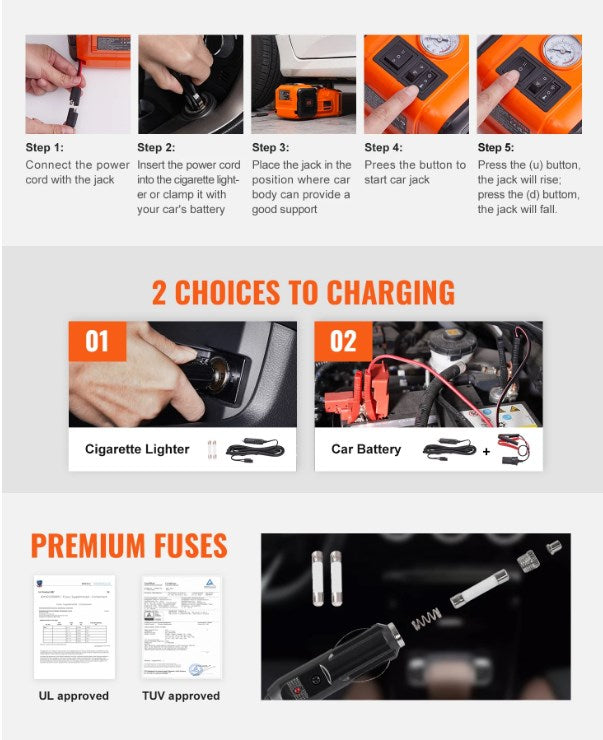 POWERFUL MOTOR - Equipped with a full copper core and a robust motor, this jack offers powerful lifting performance with minimal power consumption. Experience smooth and efficient operation every time you need to lift your vehicle.