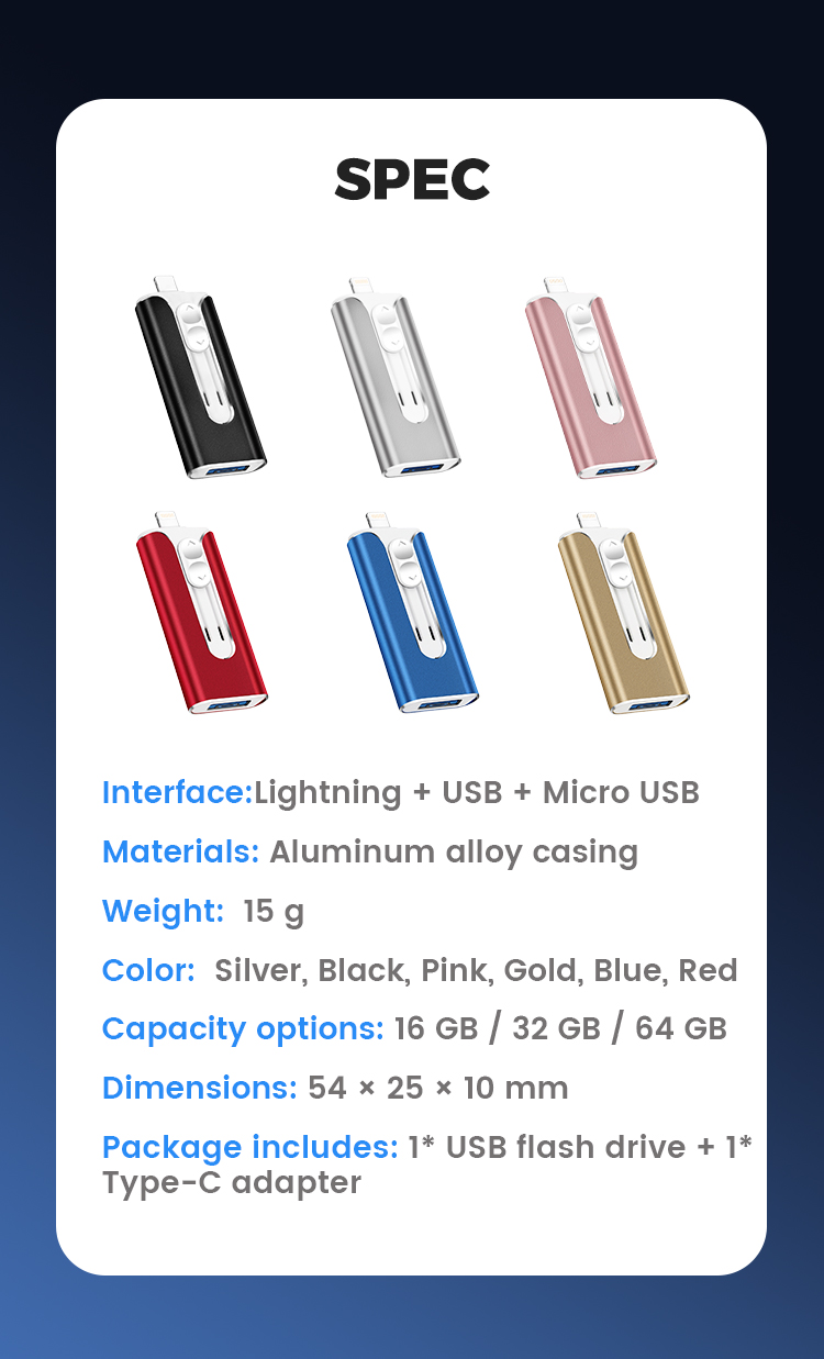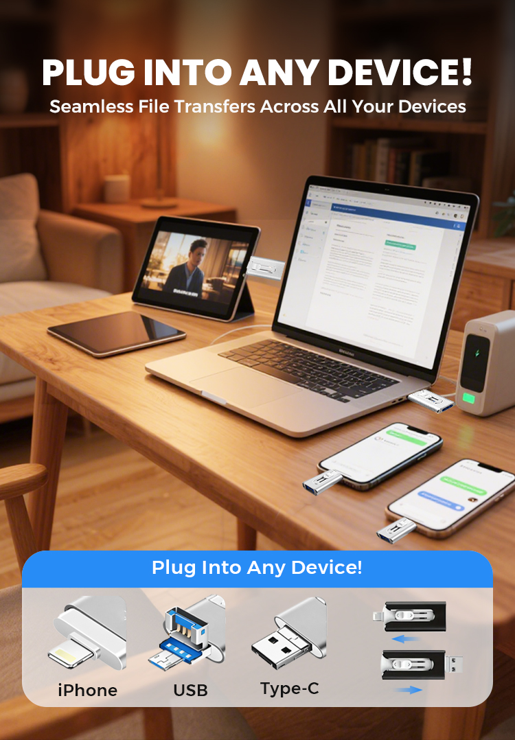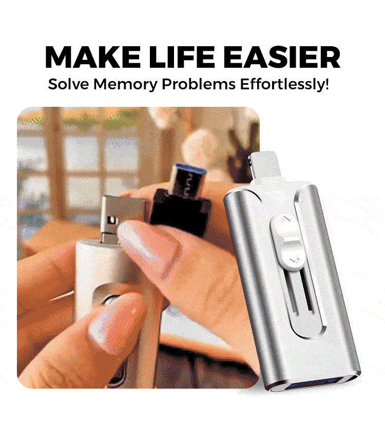 • 16GB~1TB Micro USB + MFi Certified Lightning + 8 Pin + USB 3.0 ⚡4 in1 Flash Drive for iPhone/iPad/Android/PC⚡