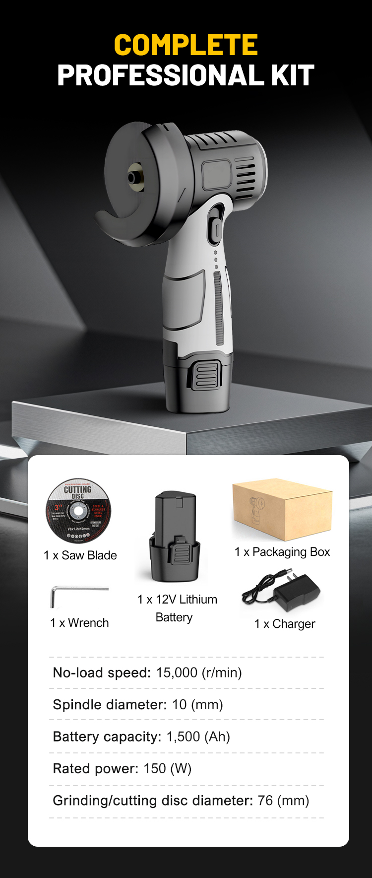• 🧰12V Mini Angle Grinder with Cutting Disc